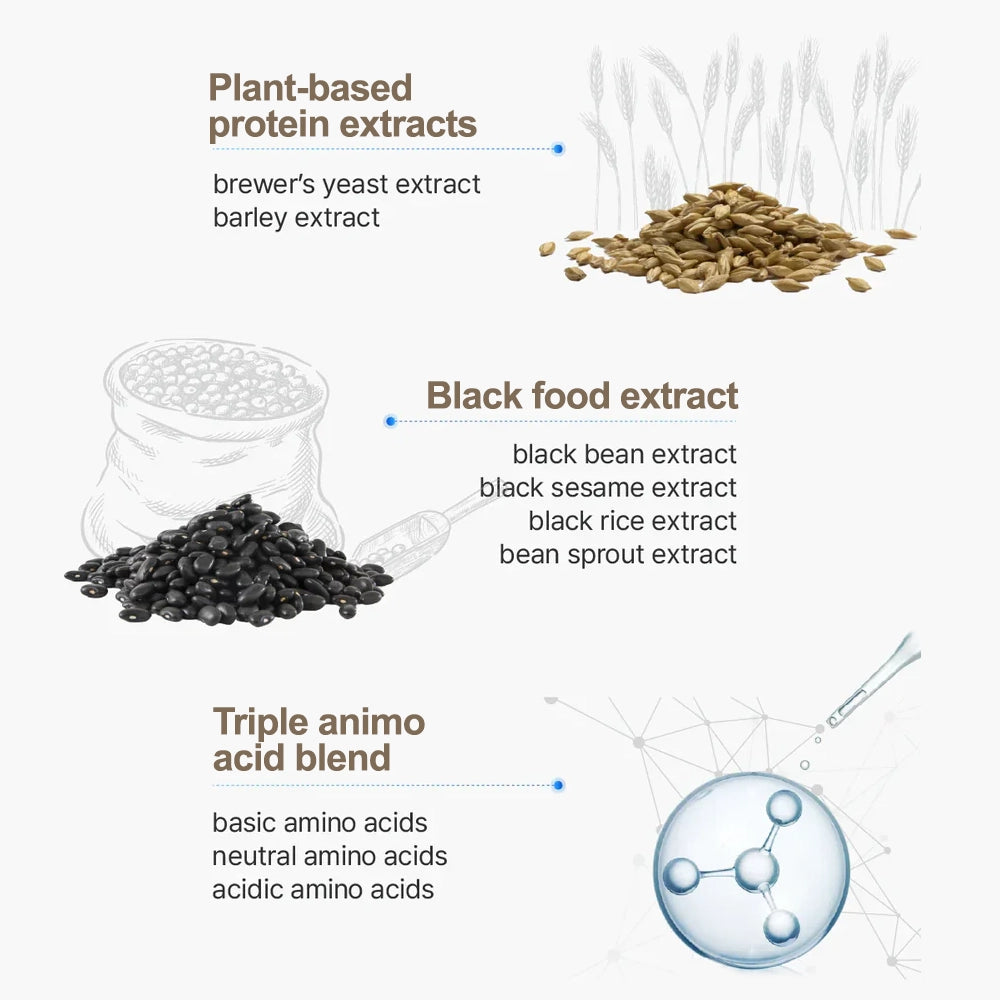 ✓ Black Food Extracts (black beans, sesame, etc.) nourish and support hair growth.