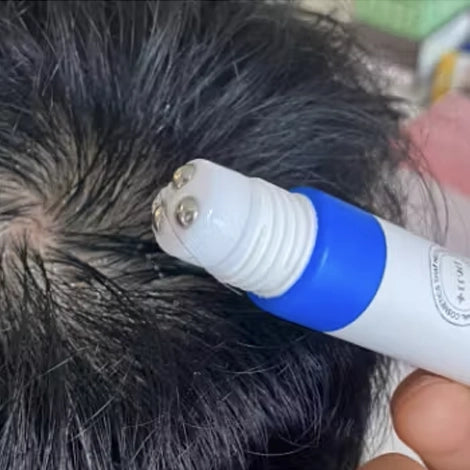 1. Squeeze the tube directly onto the desired area of the scalp.