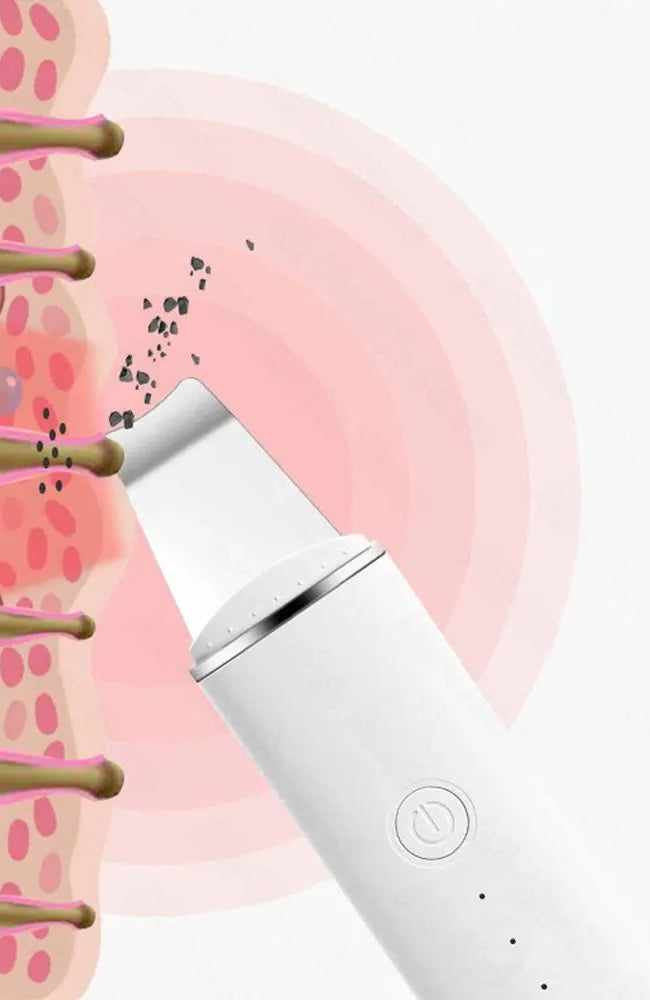 Our skin scrubber uses ultrasonic waves to speed up the natural exfoliation process, loosening and removing oil, dirt, and other cellular debris from the pores on the surface of the skin.